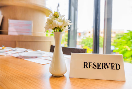 Reserved sign on cozy wooden table in modern cafe, emphasizing comfort and exclusivity. Creating an inviting atmosphere for customers looking for a peaceful and intimate dining experience