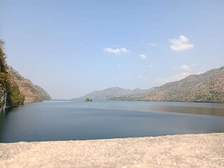 Landscape view of Khun Dan Prakarnchon Dam Reservoir and Scenic View in Nakhon Nayok, Thailand