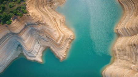Reservoir Pantano De Siurana, Tarragona, Spain. Top view. Copy space for text