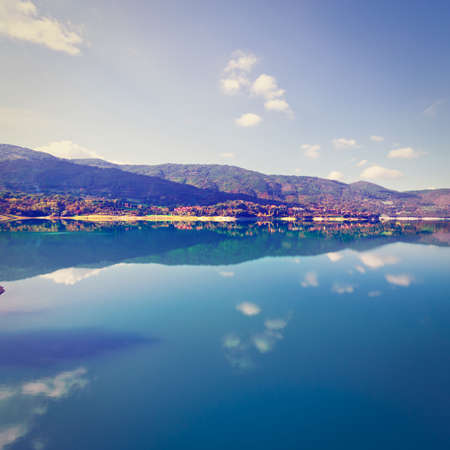 Beautiful lake with hills in the background, located in northern Georgia.