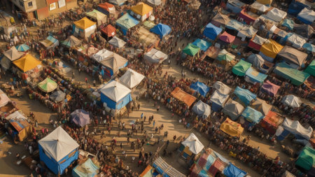 Generative AI : Aerial view of temporary tents for the Third largest Muslims congregation in Barisal Bangladesh