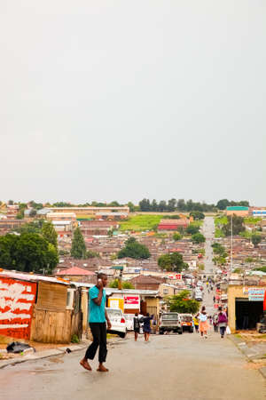 Johannesburg, South Africa - January 17, 2011: African people walking down a main road in Alexandra township, a formal and informal settlement