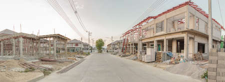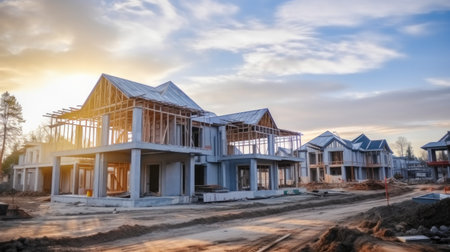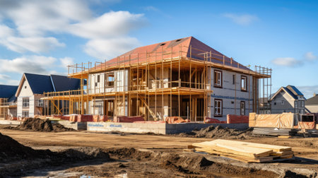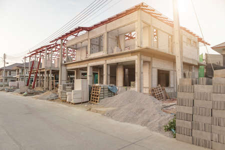 Construction residential new house in progress at building site housing estate development
