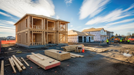 construction residential new house in progress at building site housing estate development
