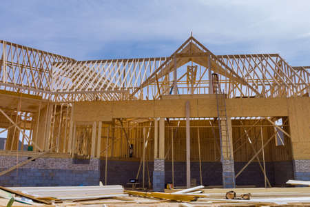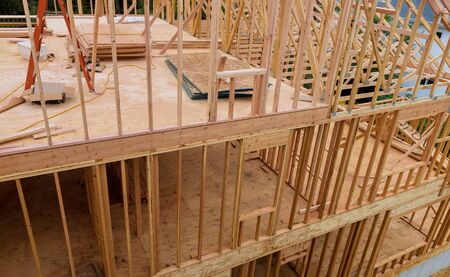 Home under development construction wood framework of new residential house construction