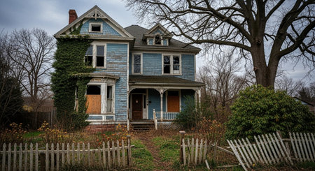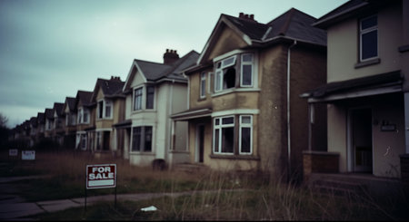 Boarded-Up House with For Sale Sign in Urban Neighborhood