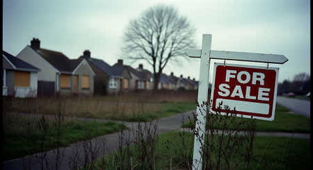For Sale Sign in Dry, Cracked Suburban Neighborhood