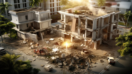 3D rendering style Earthquake concept with big copy space for text. Generative AI