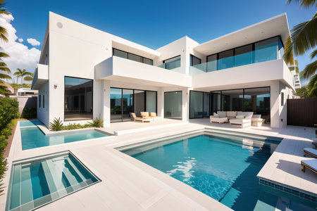 A costly, luxurious and rare summer home with stunning architecture. Image generated with Generative AI