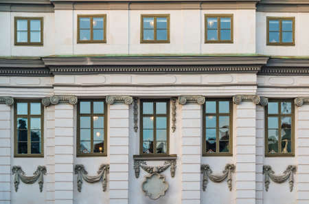 Many windows on facade of the urban historic building front view, Stockholm, Sweden