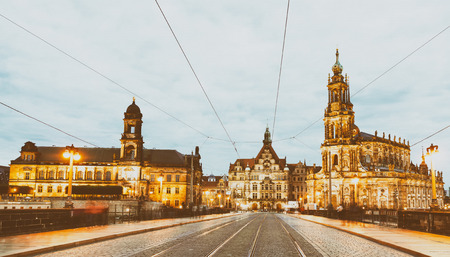 Square in Dresden, with the tram in the evening. Germany, Europe.
