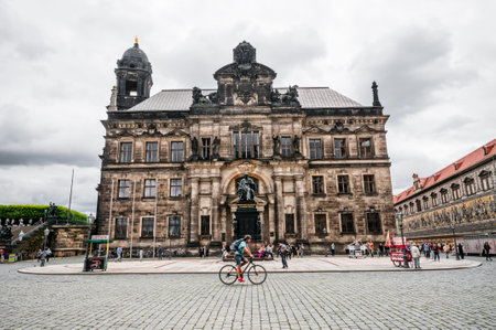 Dresden, Germany - April 22, 2024: Georgentor and the Procession of Princes the first of the city's many Renaissance buildings, Dresden, Germany