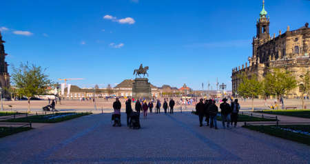Dresden, Germany - April 18, 2022: Monument to King Johann. Historical and tourist attractions in Germany