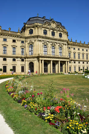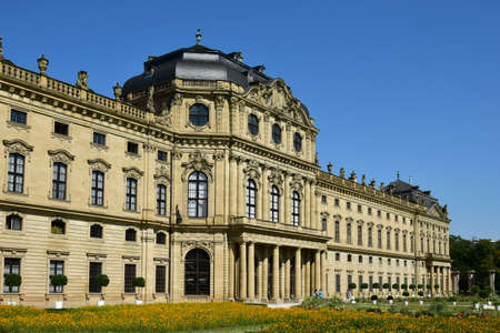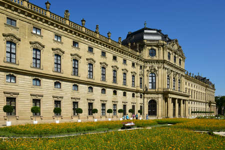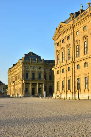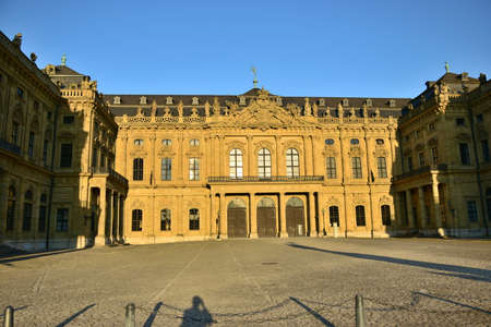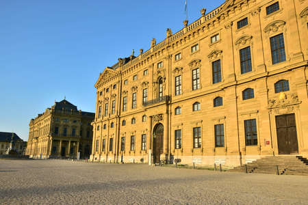 Wurzburg/Germany-3/1/19: the front facade of the Würzburg Residence and the Franconia Fountain in front of it on Residence Square in the town of Wurzburg