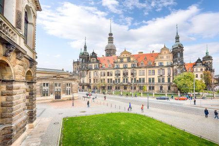 Attractive view of Dresden Castle (Dresdner Residenzschloss,Dresdner Schloss) from Zwinger museum.. Location: Dresden, state of Saxony, Germany, Europe