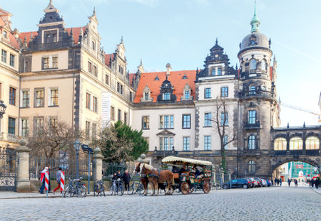Dresden, Germany - December 29, 2015: View of the facade of the Royal Palace in Dresden. One of the main tourist attractions.