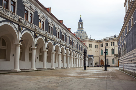 Baroque court in Dresden on a cloudy day, Saxony, Germany.