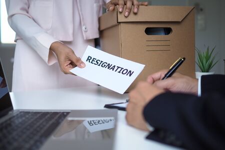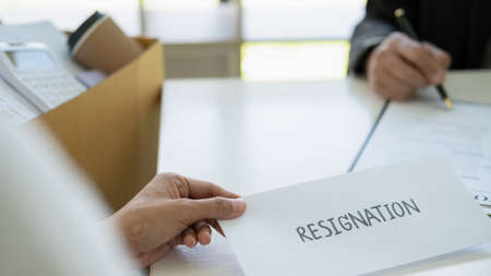 Employees who intend to quit work with resignation letters for quit or change of job leaving the office, unemployment, resigned concept.