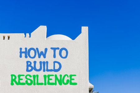 How to build resilience symbol. Concept words How to build resilience on beautiful white wall. Beautiful blue sky background. Business how to build resilience concept. Copy space.