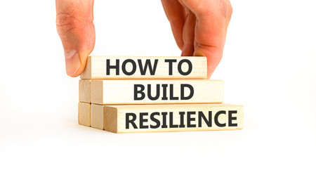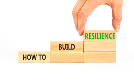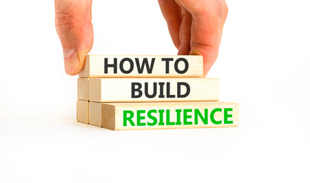 How to build resilience symbol. Concept words How to build resilience on beautiful wooden blocks. Beautiful white background. Businessman's hand. Business how to build resilience concept. Copy space