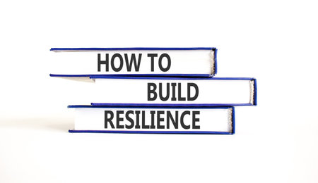 How to build resilience symbol. Concept words How to build resilience on beautiful books. Beautiful white paper background. Business how to build resilience concept. Copy space.