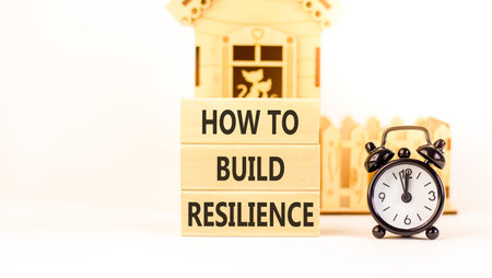 How to build resilience symbol. Concept words How to build resilience on beautiful wooden blocks. Beautiful white background. Black alarm clock. Business how to build resilience concept. Copy space