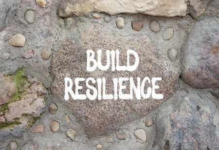 Build resilience symbol. Stone wall with words Build resilience. Beautiful stone background. Business and Build resilience concept. Copy space.