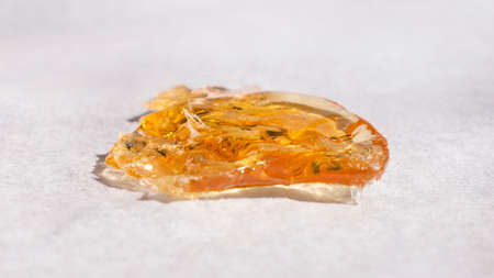 high thc, pieces of yellow cannabis wax on white paper