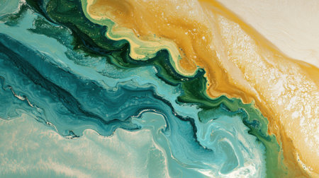 Liquid flow texture paint. modern art background. abstract epoxy resin painting. Green waves with bronze. abstract digital paper fine art pattern.