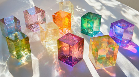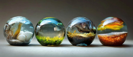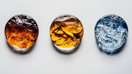 Flowers and glitters inside of crystals made of epoxy resin close-up with bokeh on toned background shallow depth of field