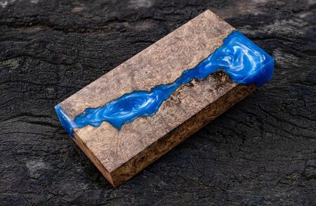 Casting epoxy resin Stabilizing Afzelia burl wood blue abstract art background texture for blanks