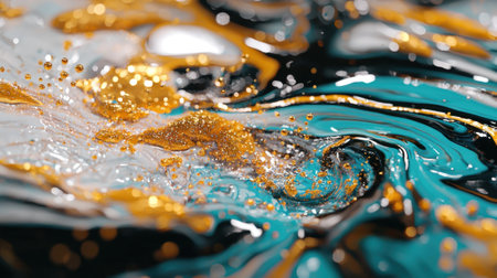 Generative AI, Liquid Uneven Golden Glitter, Blue and Green Glitter
