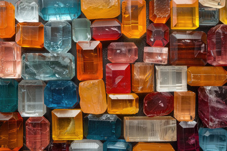 A collection of different colored rocks and stones are stacked on top of each other. The stones are of various sizes and shapes, and they are arranged in a way that creates a visually interesting