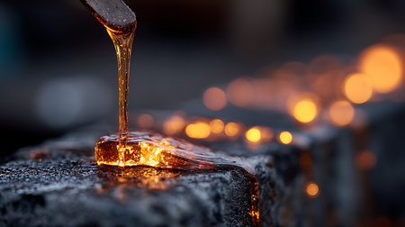 Shiny gemstone drop reflects vibrant gold color pattern generated by artificial intelligence
