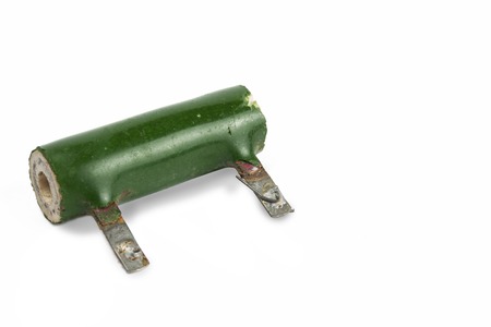 Radio element, very old resistor close-up, on a white background