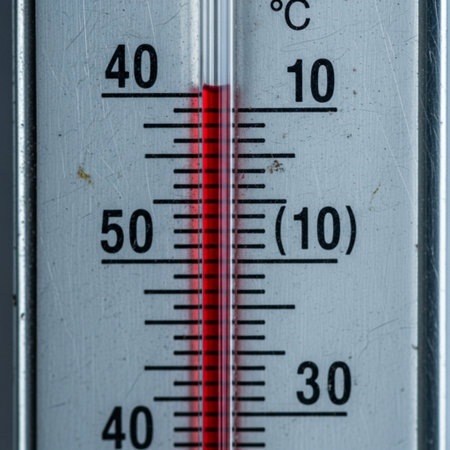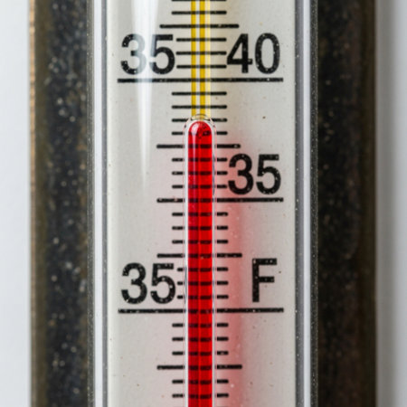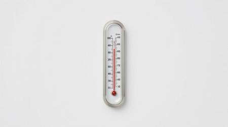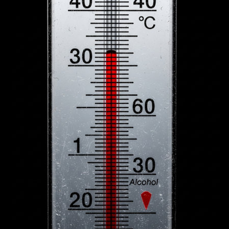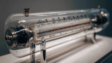 A thermometer displays temperature readings in Celsius with clear markings, set against a dark backdrop emphasizing its details.