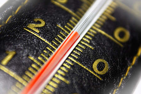 macro of a thermometer on a white background
