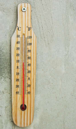 Outside thermometer on concrete wall