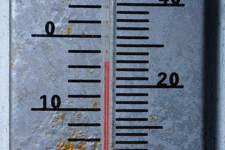 Close - up of Big external thermometer on a wall. Selective focus.