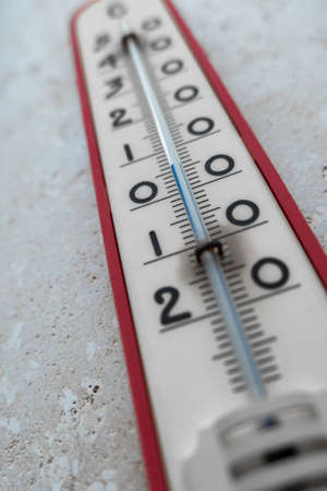 thermometer outdoor in the winter with freezing temperature