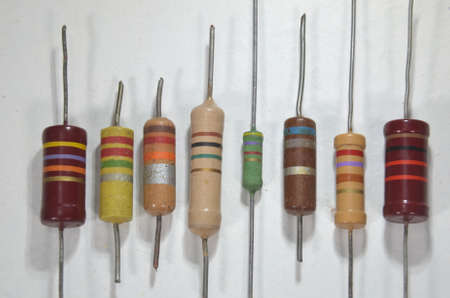 Used resistors with different values on a white background closeup