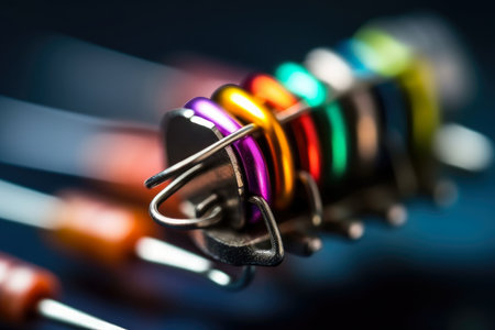 Close-up of electronic resistors with color code