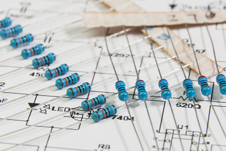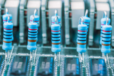 Electronics components resistors on board electrical circuits