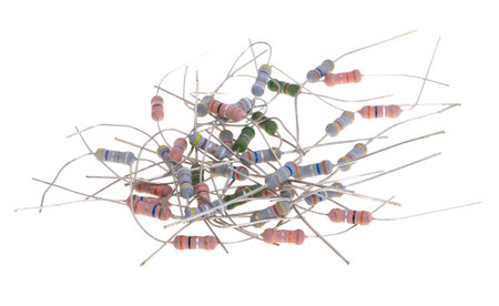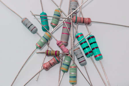 Colorful carbon film resistors isolated on white background