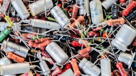 heap old electronic components, background