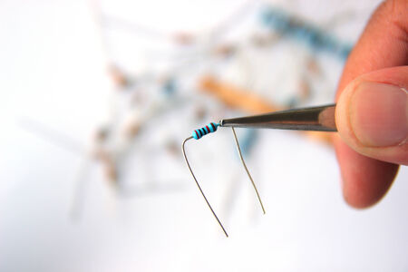 Resistor DC voltage on the white background macro