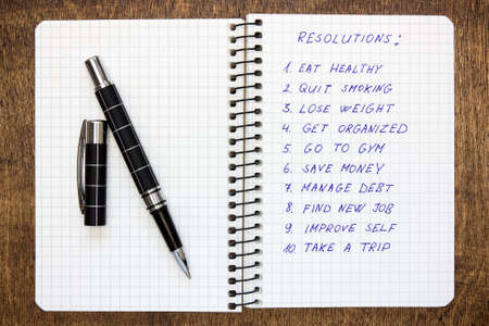 Resolutions hand writing list in notepad - inspirational and motivating concept