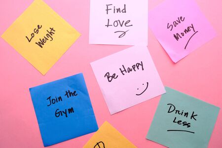 New Year's goals, New Year's resolutions with colorful decorations.