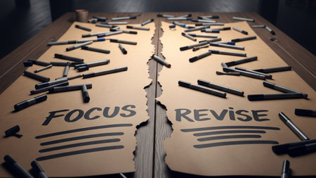 A flat lay composition featuring colorful letters spelling out Focus on What Matters, ideal for themes of motivation, positivity, and personal development in a clean workspace.