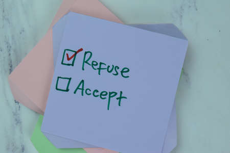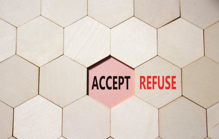 Accept or Reject symbol. Concept word Accept or Reject on wooden comb puzzle. Beautiful pink background. Business and Accept or Reject concept. Copy space